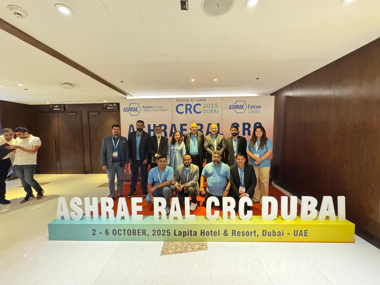 A 25-member delegation from the ASHRAE Pakistan Chapter, comprising members of the Board of Governors, Committee Chairs, and accompanying representatives, attended the ASHRAE Region-At-Large Chapters Regional Conference (CRC) 2025, held from 2–6 October 2025 at Dubai Lapita Hotels and Resorts, UAE.